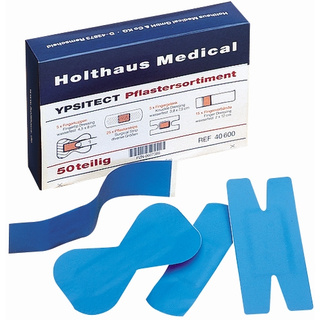 Assortiment of 50 single bandages,, water resistant and blue for use in profeesional kitchens/enviroments