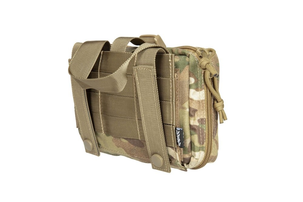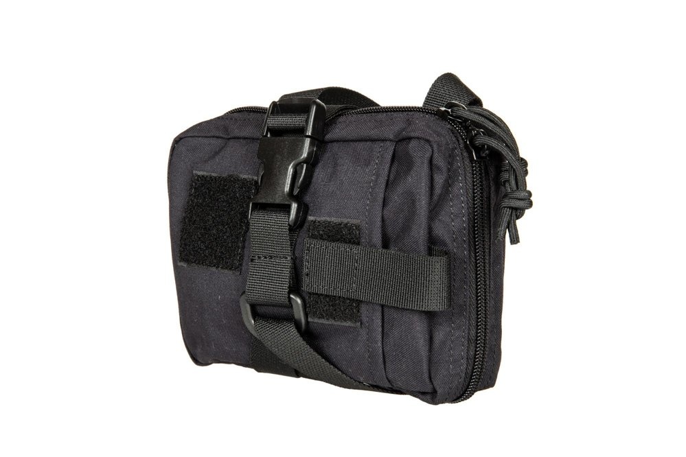 The pouch is additionally secured with a tape with a buckle. On the front wall of the first aid kit there is a small, flat pocket closed with Velcro and a small Velcro panel, e.g. for a moral patch.
